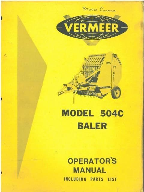 Vermeer Round Baler 504c Operators Manual With Parts List